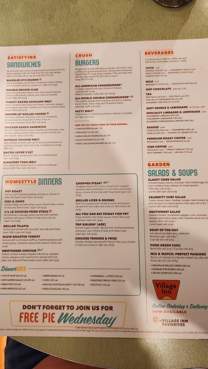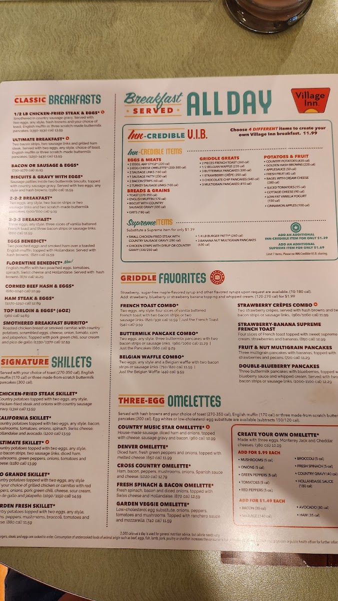 Welcome to Village Inn Tampa, a cherished local spot located at 215 N Dale Mabry Hwy. Known for its homestyle offerings, this diner brings a sense of nostalgia with a modern twist. The warm, inviting atmosphere complements a menu that features crowd-pleasers like the Homestyle Chicken—crispy chicken served with melty country gravy and a side of warm biscuits.